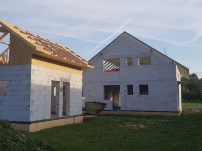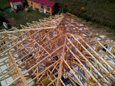 Dobudówka domu razem z rekonstrukcją przy użyciu wiązarów kratowch na dach czteropołaciowy